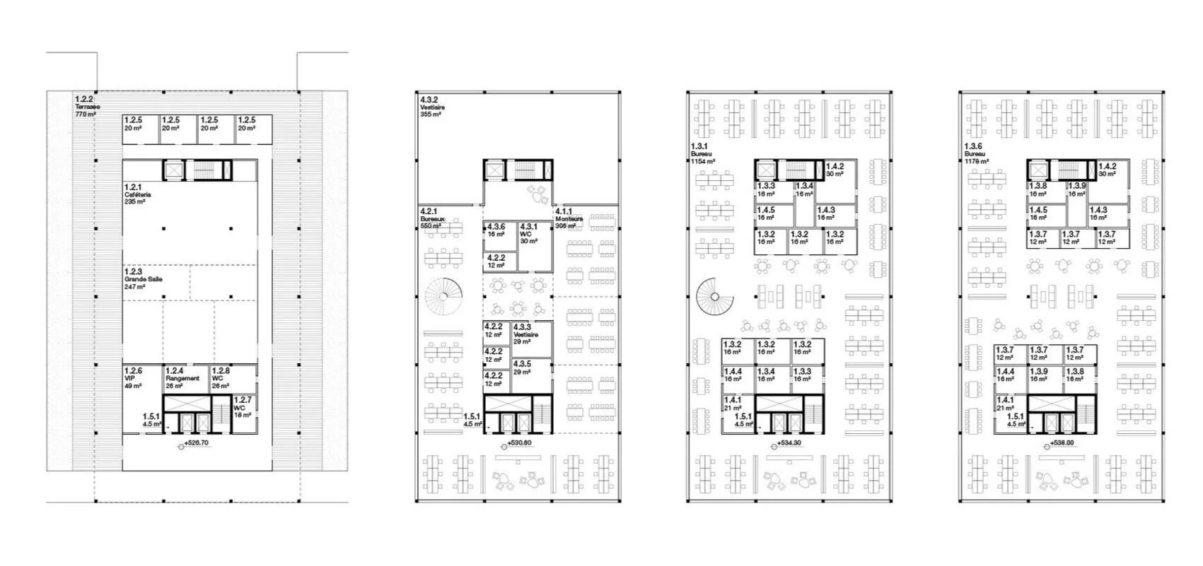 The parking lots, logistics and workshops are condensed into a low, horizontal volume, from which emerges the administrative and operational building, stacked vertically and providing exceptional views and daylighting. The facade of the low volume, made up of corrugated and (in specific locations) perforated metal panels, homogenizes the building while offering different levels of openness and transparency. Its roof, covered in more than 10,000m2 of solar panels, is a lightweight and flexible modular system within which windows can be positioned as required, providing generous natural light to the parking and logistics spaces and reducing the need for artificial lighting.